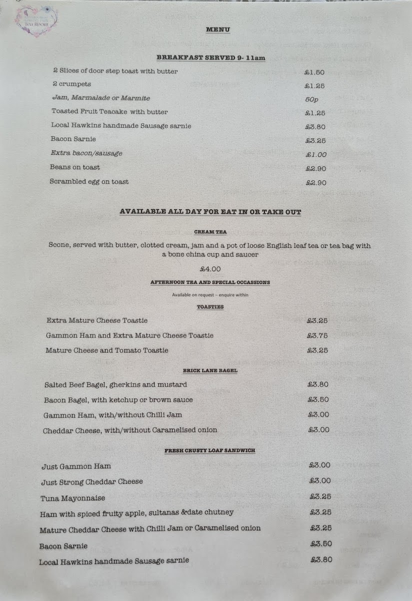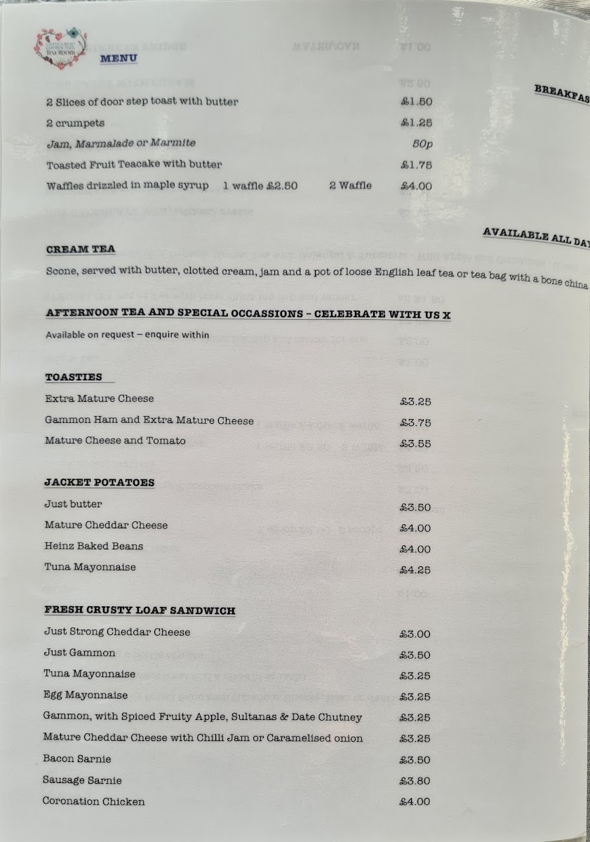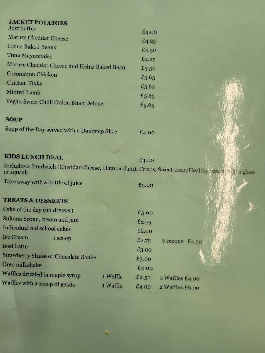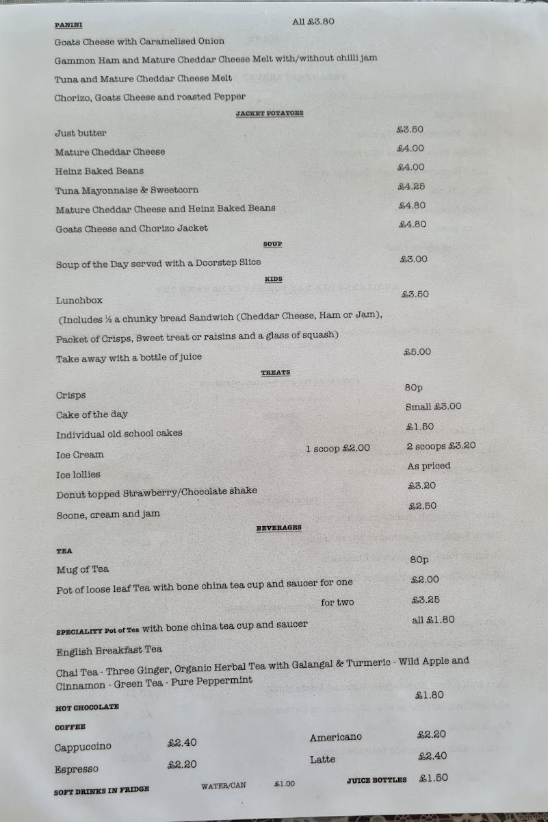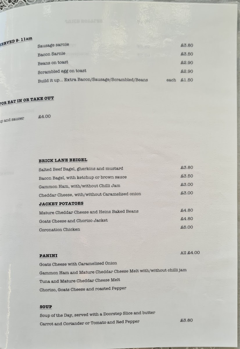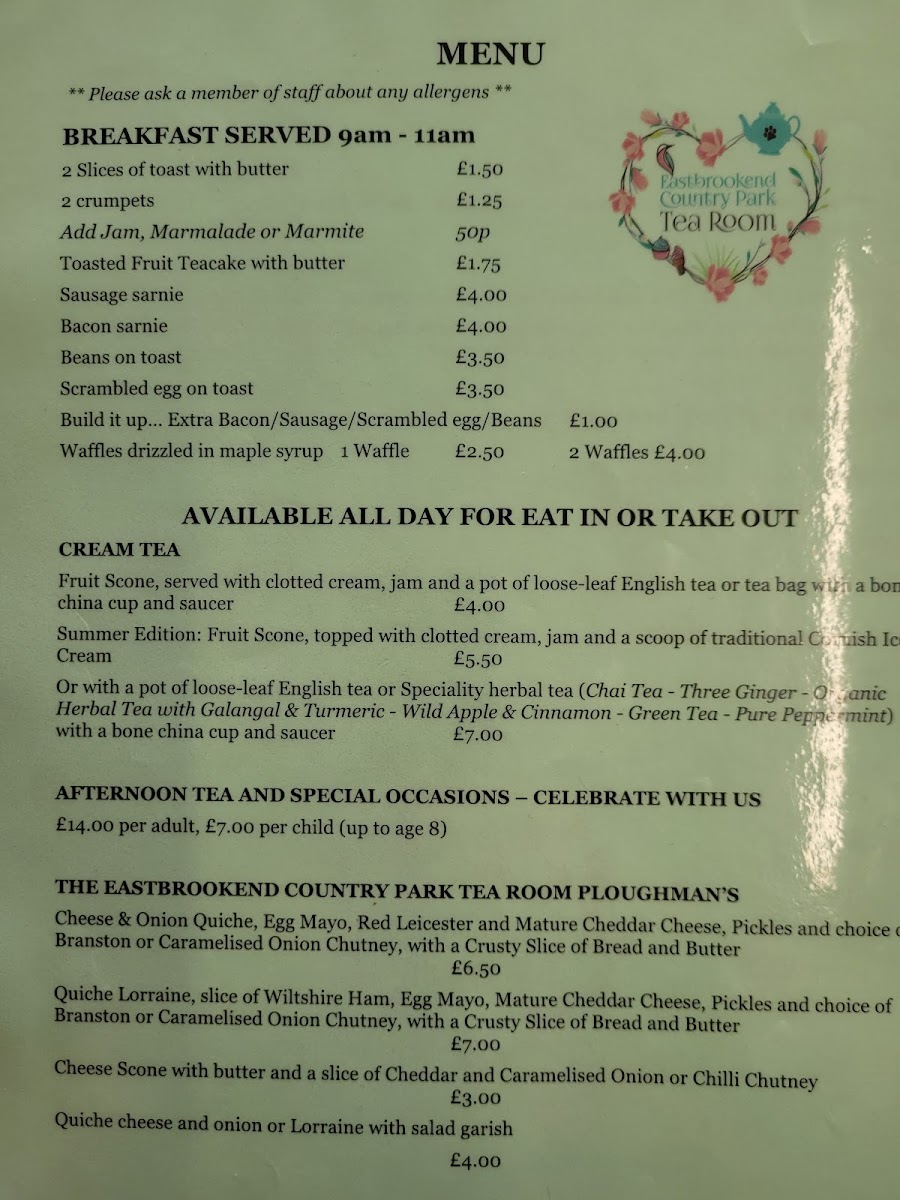 Overall, the menu at Eastbrookend Country Park Tea Room offers a comforting and casual selection that leans into classic café staples, with a pleasant variety across its categories. The Panini options, such as Goats Cheese With Caramelised Onion and Gammon Ham And Mature Cheddar Cheese Melt With/Without Chilli Jam, provide satisfying savory choices, while lighter bites like jacket fillings including Mature Cheddar Cheese And Heinz Baked Beans and Tuna Mayonnaise & Sweetcorn keep things simple and familiar. Breakfast items such as 2 Slices Of Toast With Butter, Sausage Sarnie, and Bacon Sarnie cater well to early visitors, and the Brick Lane Beigel range-featuring Salted Beef Bagel, Gherkins And Mustard and Chicken Tikka-adds a slightly more distinctive touch. Sandwiches and baguettes, including Ham With Spiced Fruity Apple, Sultana & Date Chutney and Egg Mayonnaise, round out the core offerings. For those with a sweet tooth, treats like Cake Of The Day, Individual Old School Cakes, and the indulgent Donut Topped Strawberry/Chocolate Shake are appealing highlights. The beverage selection, from a classic Mug Of Tea to coffees like Cappuccino and Americano, complements the menu nicely. While prices are not specified, the overall selection feels approachable and well-suited to a relaxed park-side dining experience.